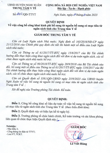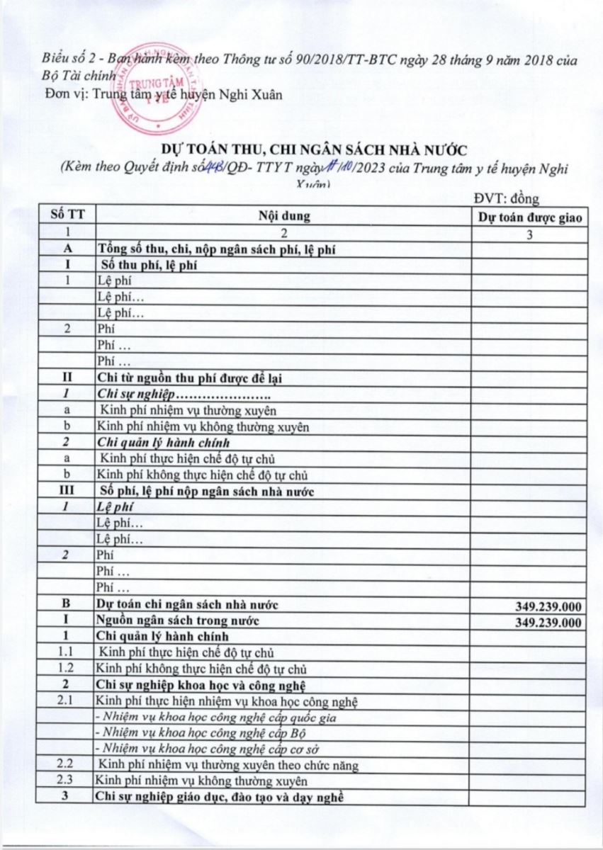 Trung tâm Y tế huyện Nghi Xuân công bố quyết định công khai kinh phí bổ sung từ nguồn bổ sung có mục tiêu từ ngân sách tỉnh