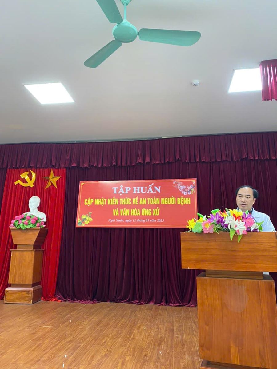 ➖ Phát biểu tại buổi tập huấn, Giám đốc Trung tâm Bs. Lê Viết Hùng cảm ơn Thạc sỹ Nguyễn Việt Thắng Phó trưởng phòng Nghiệp vụ y, Sở Y tế Hà Tĩnh đã dành thời gian về TTYT Nghi Xuân truyền đạt nhiều kiến thức bổ ích về An toàn người bệnh và văn hóa ứng xử. Đồng thời đồng chí Giám đốc yêu cầu toàn thể viên chức và người lao động không ngừng học hỏi, rèn luyện tiếp thu những kiến thức tại buổi tập huấn áp dụng vào thực tiễn trong hoạt động khám, chữa bệnh hướng tới sự hài lòng cao nhất của người bệnh và người nhà người bệnh khi đến với đơn vị chúng ta.