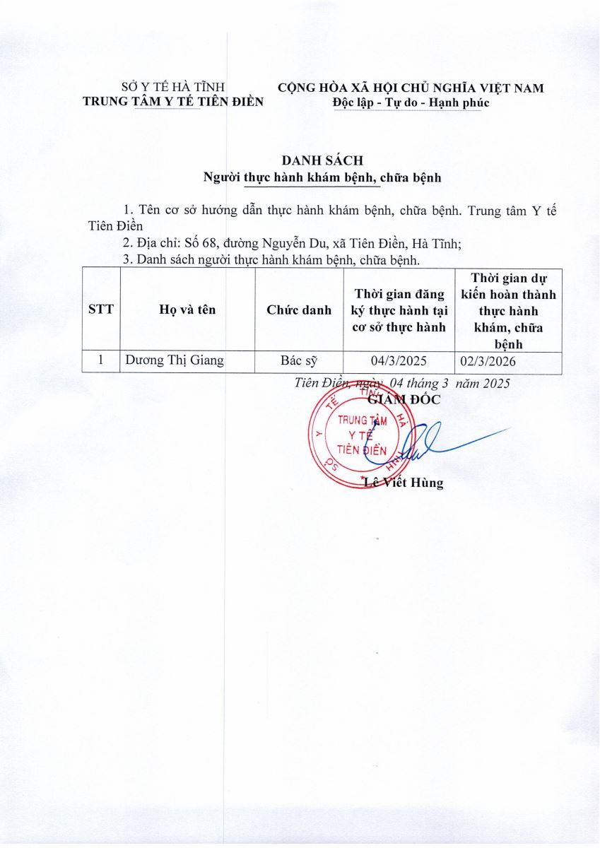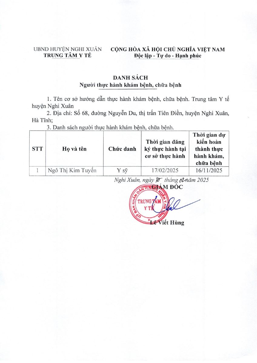 Người thực hành khám bệnh, chữa bệnh tại Trung tâm y tế huyện Nghi Xuân