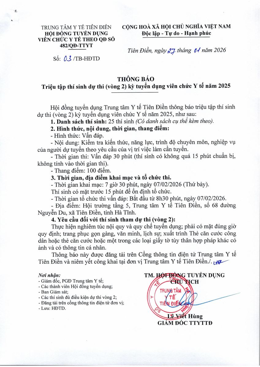 Triệu tập thí sinh dụ thi (Vòng 2) kyd thi tuyển dụng viên chức Y tế năm 2025