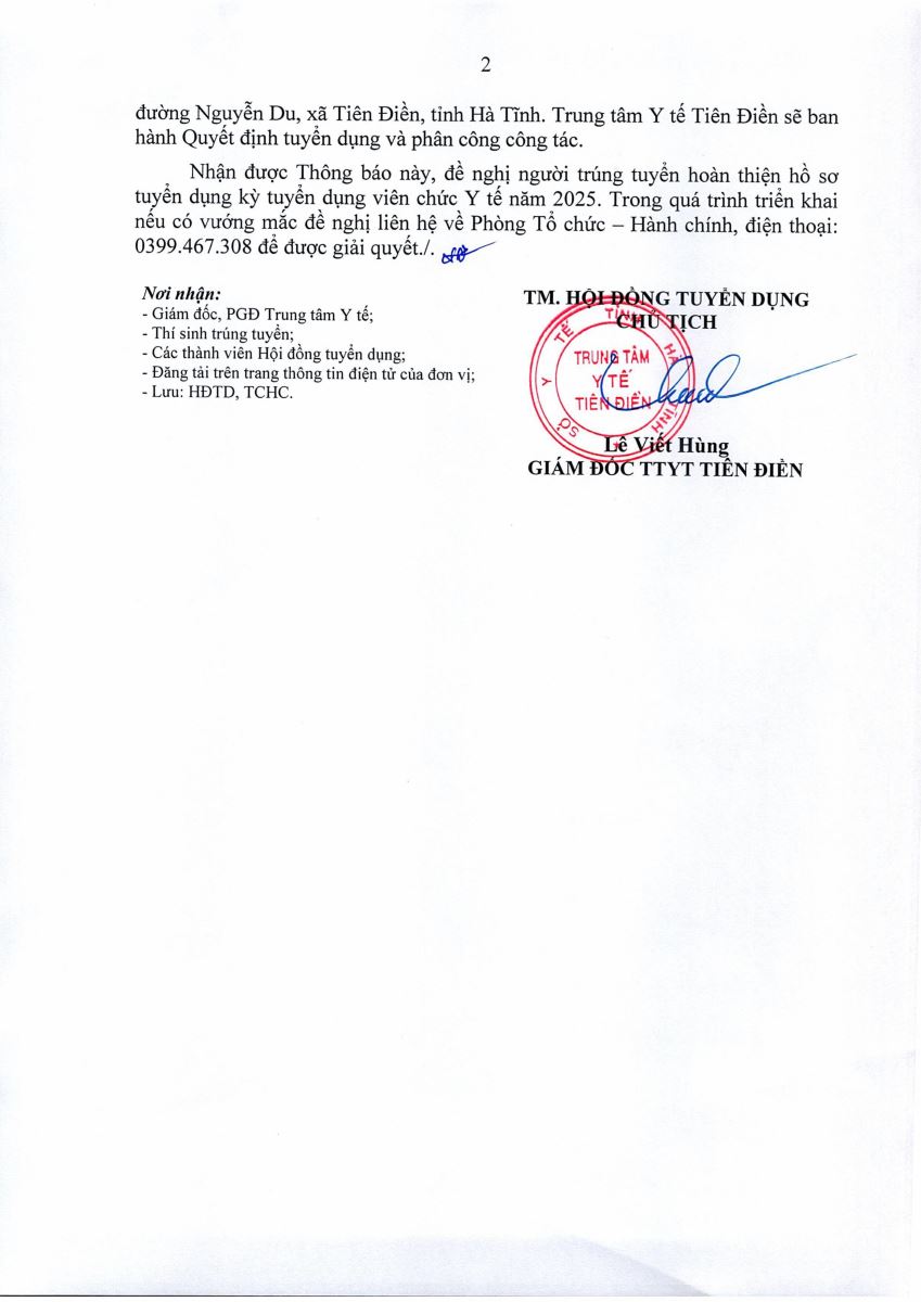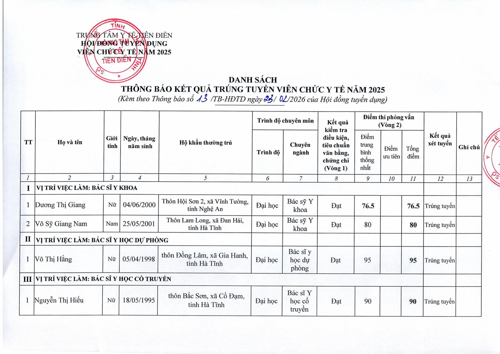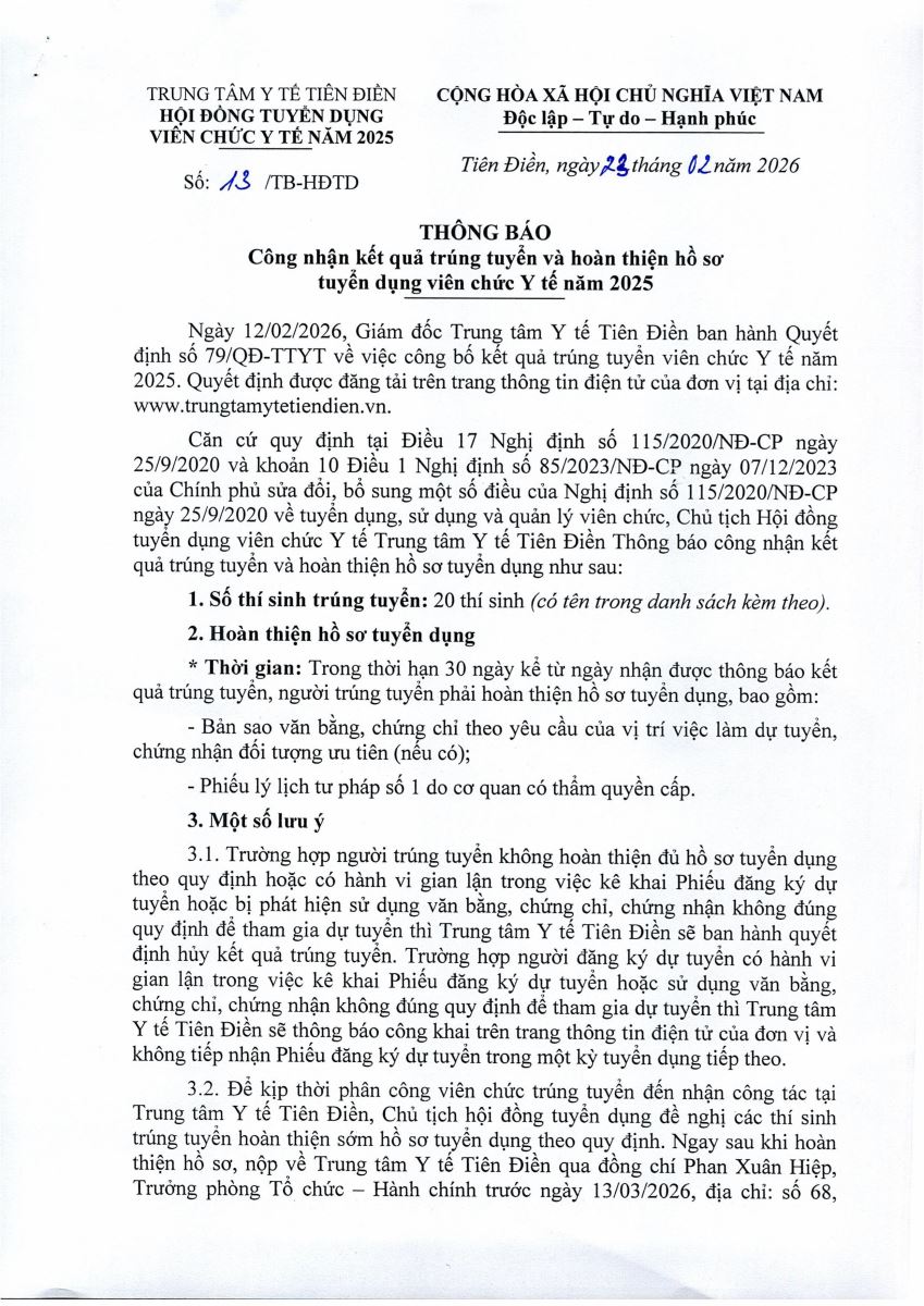 Công nhận kết quả trúng tuyển và hoàn thiện hồ sơ tuyển dụng viên chức Y tế năm 2025
