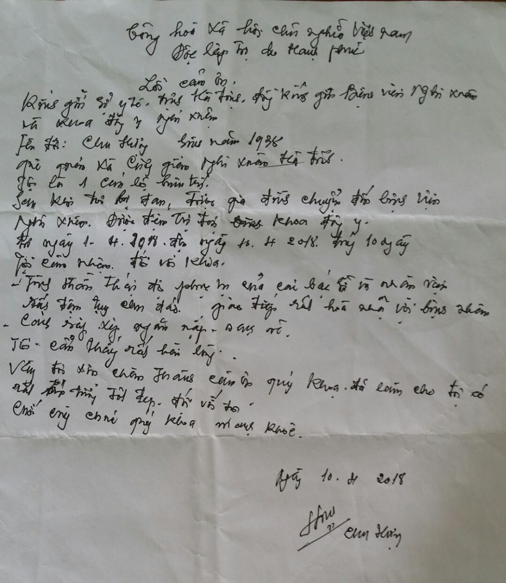 Thư khen của bệnh nhân