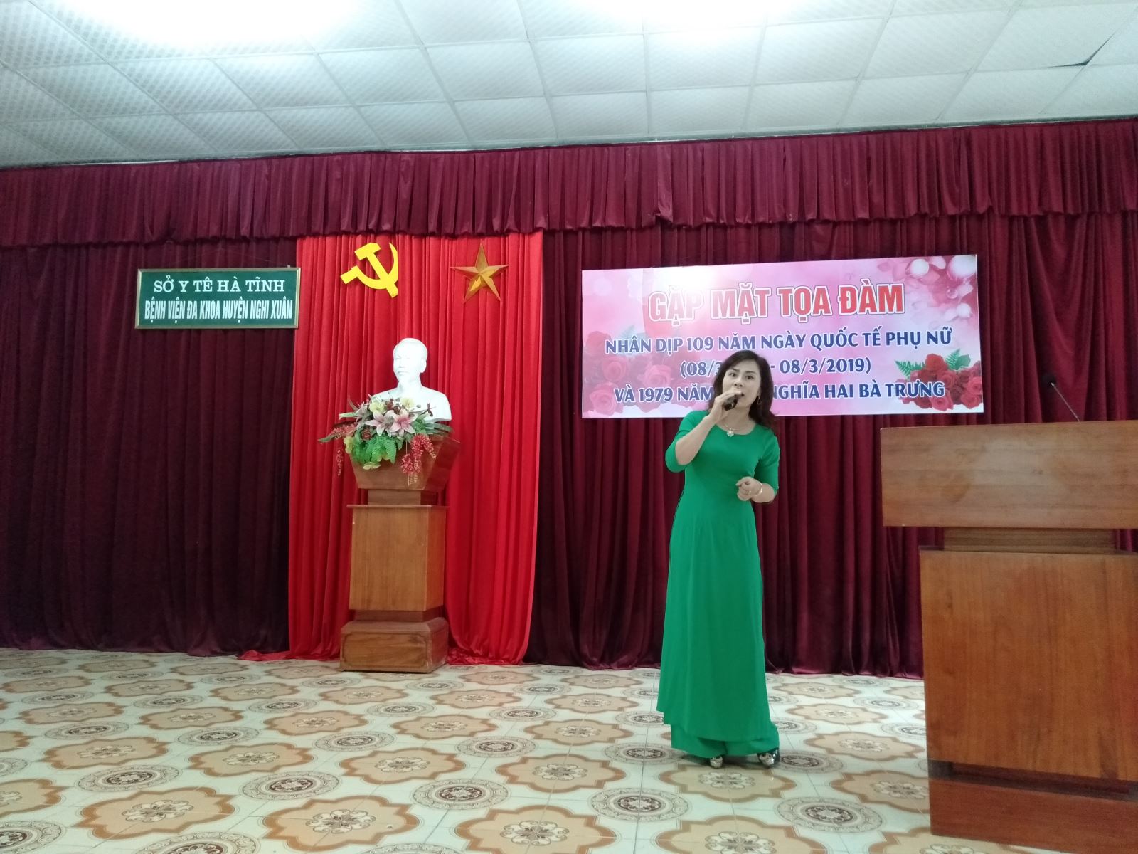 Đại điện cho ban chấp hành công đoàn, Ban nữ công Bệnh viện đa khoa Nghi Xuân, đồng chí Trần Thị Tân Hương - Trưởng ban nữ công đã ôn lại lịch sử ngày 8/3 và cuộc khởi nghĩa Hai Bà Trưng. Đồng chí nhấn mạnh: Trong thời gian qua, chị em phụ nữ đơn vị luôn khẳng định được vai trò quan trọng và có những đóng góp lớn lao cho sự phát triển vững mạnh và toàn diện của bệnh viện, của ngành các đồng chí luôn gìn giữ và phát huy phẩm chất đạo đức trong sáng của nữ cán bộ, viên chức ngành y, sống giản dị, đoàn kết giúp đỡ nhau trong cuộc sống, công việc, là những tấm gương vượt khó, giàu nghị lực nhiều chị em đã đạt danh hiệu giỏi việc nước, đảm việc nhà, hàng năm có nhiều chị em đạt danh hiệu chiến sỹ thi đua cơ sở, giấy khen của Giám đốc sở y tế… Để có được những thành quả đó là cả một quá trình học tập, rèn luyện, phấn đấu không biết mệt mỏi, gánh nặng gia đình, chăm sóc con cái, các chị em vẫn khắc phục khó khăn hoàn thành tốt mọi nhiệm vụ, tinh thần, trách nhiệm, nghị lực của chị em thật là đáng trân trọng và cảm phục, tự hào là những người phụ nữ của Bệnh viện đa khoa Nghi Xuân. Họ là những người phụ nữ trung hậu, đảm đang, là những giương sáng “giỏi việc nước, đảm việc nhà”.