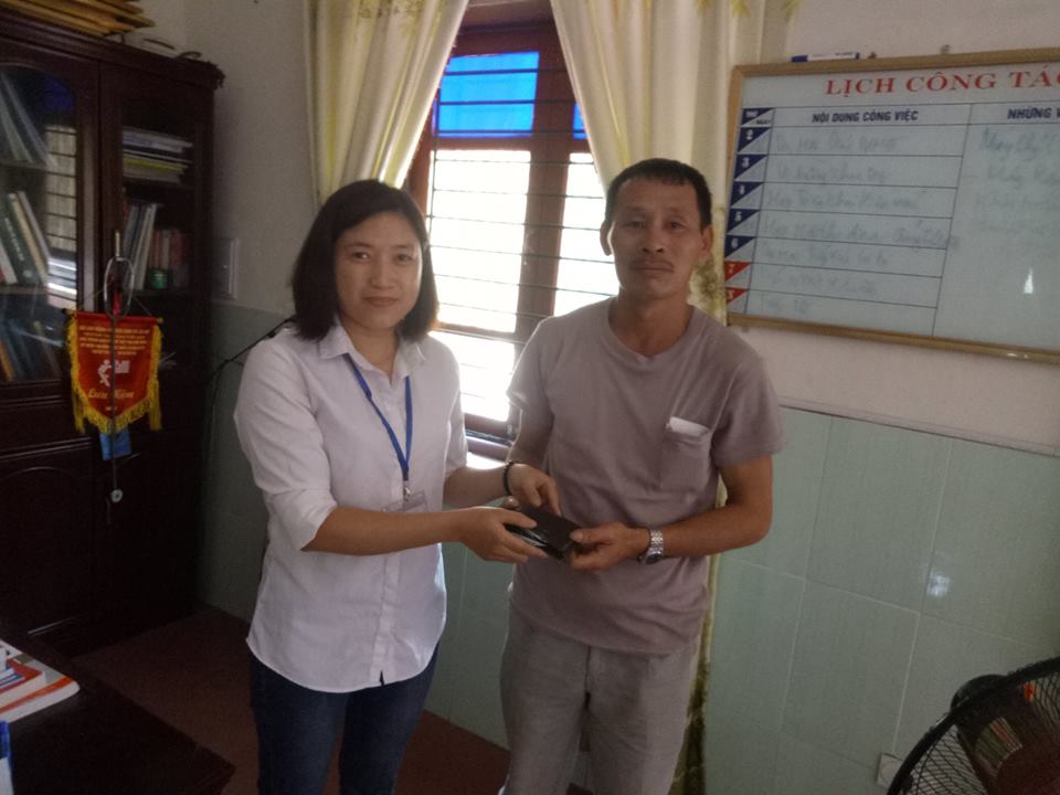 Chị Thanh trả lại ví tiền bị mất cho anh Hòa