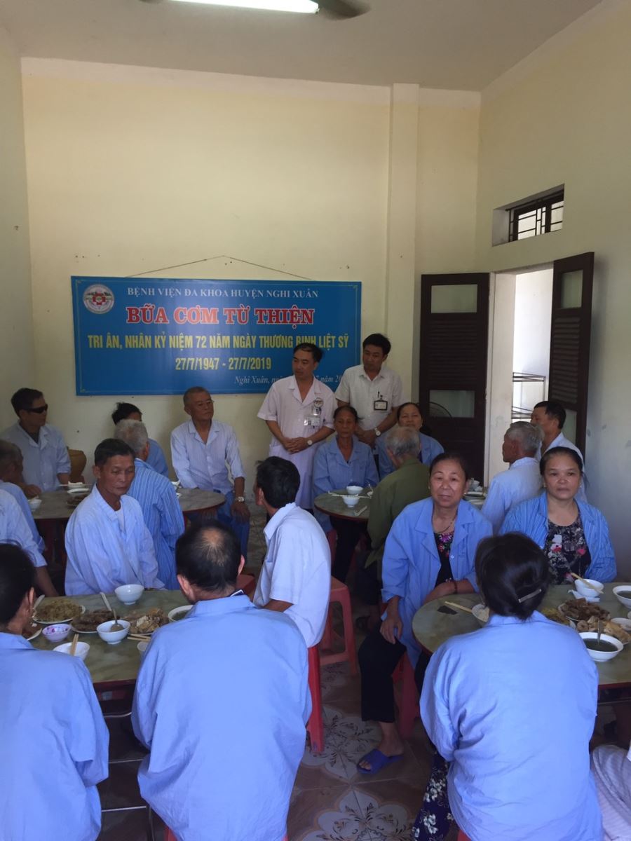 Bệnh viên đa khoa huyện Nghi Xuân tổ chức chuỗi hoạt động tri ân thể hiện đạo lý "Uống nước nhớ nguồn", "Đền ơn đáp nghĩa" như đến động viên thăm hỏi tặng quà cho thương bệnh binh, thân nhân gia đình liệt sỹ, người có công với cách mạng đang nằm điều trị nội trú tại bênh viện. Thành lập đoàn khám với nhiều trang thiết bị như siêu âm, điện tim, khám, tư vấn sức khỏe, cấp thuốc miễn phí cho 300 đối tượng thương binh, gia đình chính sách, người có công tại 2 xã Xuân Mỹ và Xuân Lĩnh. Trong ngày 26/7, bệnh viện đã tổ chức một bữa cơm thân mật dành cho các bệnh nhân là thương binh, người có công đang điều trị nội trú tại viện. Tổ chức đoàn đi viếng di tích lịch sử Ngã ba Đồng Lộc, nghĩa trang huyện nhà và nghĩa trang thị trấn Nghi Xuân. Việc đón tiếp, thăm khám, động viên, điều trị và tư vấn sức khỏe cho các thương bệnh binh và các gia đình có công luôn được thực hiện một cách tận tình và chu đáo.Tổng kinh phí của tháng hành động ước tính 55 triệu đồng