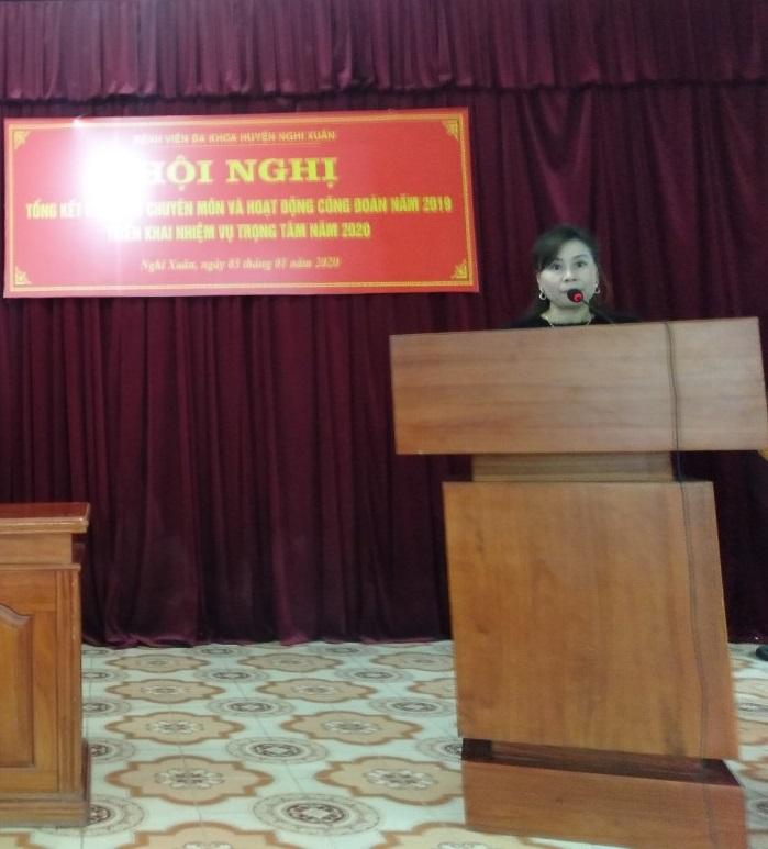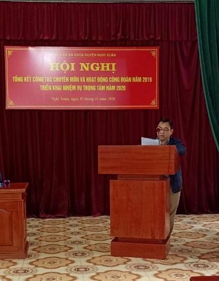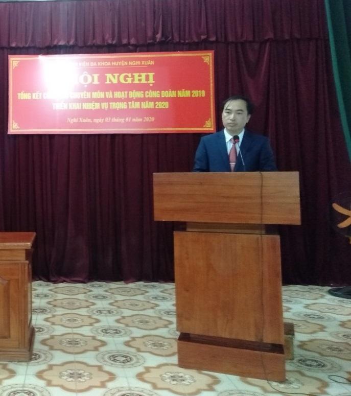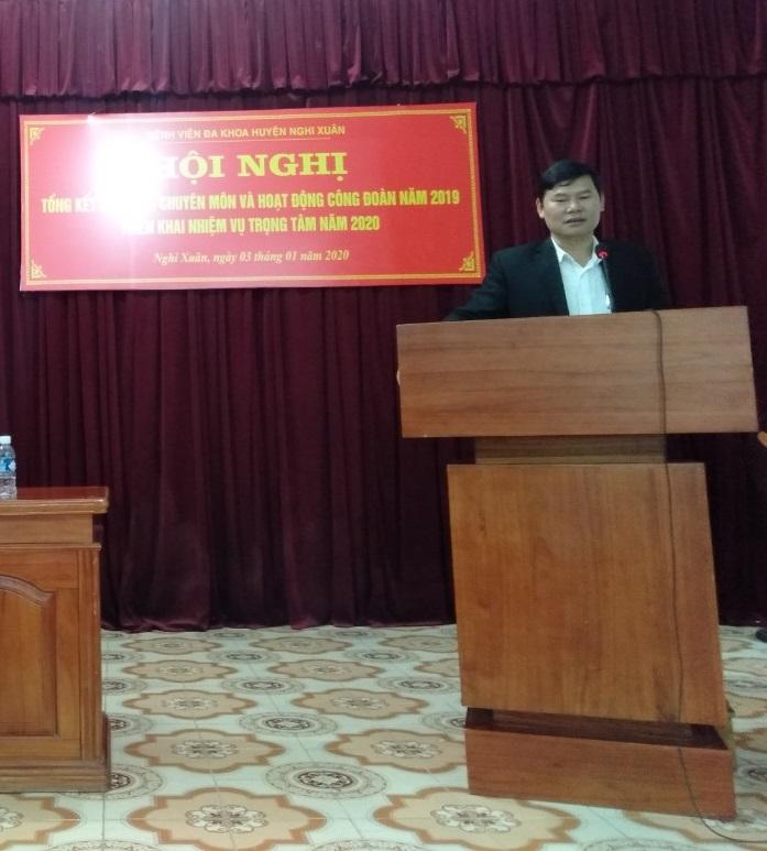 Phát biểu tại Hội nghị, đồng chí Phó Giám đốc – Phụ trách bệnh viện đã ghi nhận những kết quả đạt được của tập thể cán bộ, viên chức, người lao động bệnh viện đa huyện Nghi Xuân trong năm 2019. Những kết quả đó thể hiện tinh thần đoàn kết nỗ lực của tập thể, sự chỉ đạo sâu sát của Ban giám đốc Bệnh viện, đã làm tốt công tác giáo dục chính trị tư tưởng đối với cán bộ y tế, có nhiều sáng kiến trong đổi mới tác phong, lề lối làm việc, phát huy được tinh thần làm chủ, ý thức tự giác của cán bộ, y, bác sỹ. Trong thời gian tới, Bệnh viện cần tiếp tục làm tốt công tác giáo dục chính trị tư tưởng, đề cao trách nhiệm của người đứng đầu các khoa phòng; Tiếp tục thực hiện tốt phương châm: Tất cả vì người bệnh. Ra sức phấn đấu xây dựng bệnh viện: An toàn, thân thiện, bệnh viện vì dân.