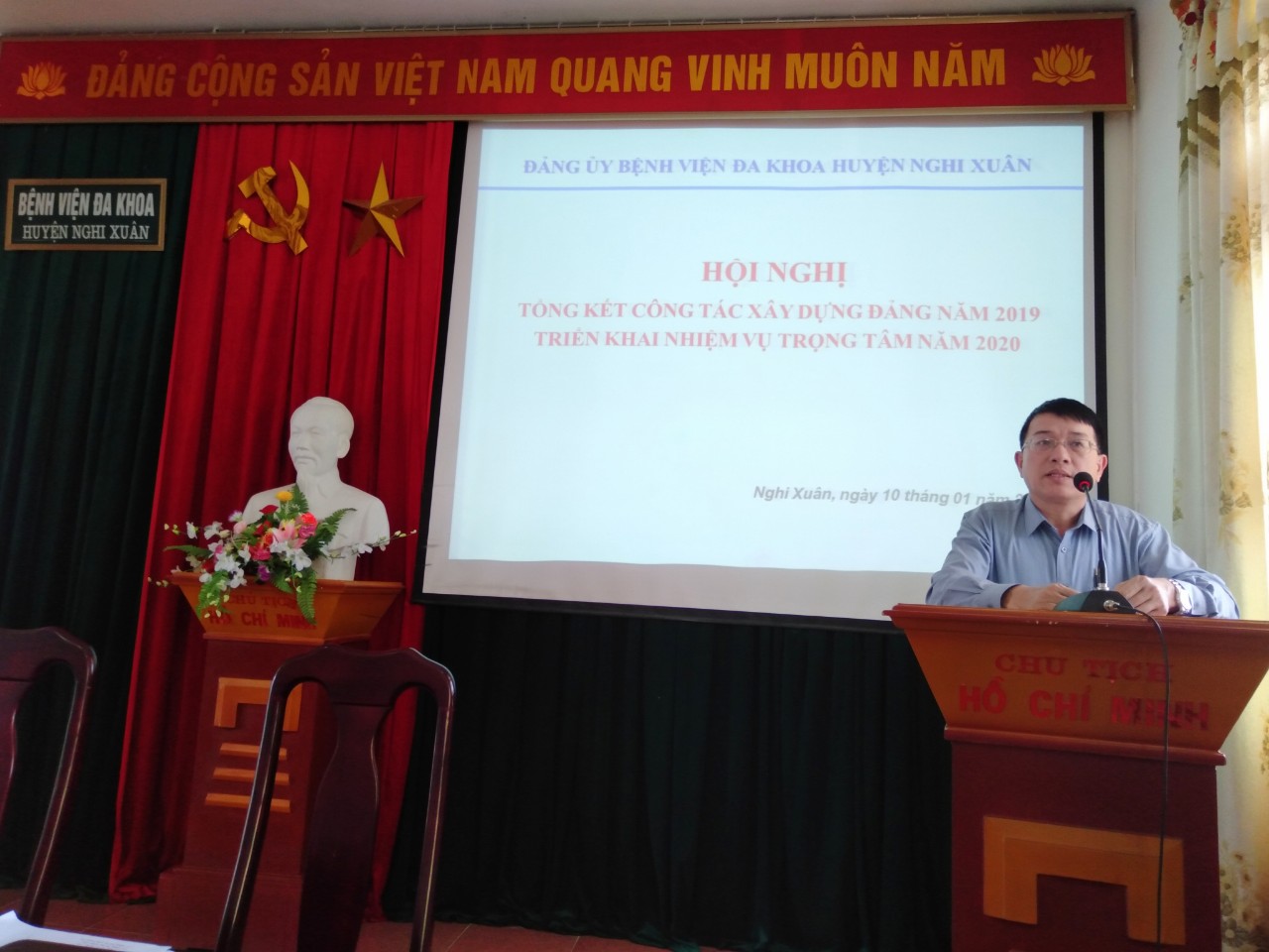 Mở đầu hội nghị, BS.CKI Lê Viết Hùng Ủy viên BCH Đảng bộ, Phó Giám đốc – Phụ trách bệnh viện đọc bản báo cáo tổng kết công tác Đảng năm 2019 và Phương hướng nhiệm vụ trong tâm năm 2020