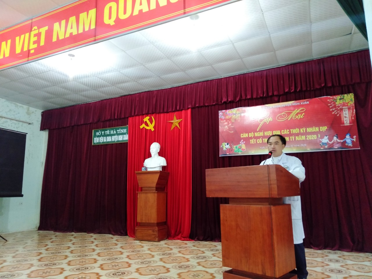 Phát biểu tại buổi gặp mặt, đồng chí đồng chí Lê Viết Hùng, Phó Giám đốc – Phụ trách Bệnh viện bày tỏ vui mừng được gặp các đồng chí nguyên là lãnh đạo, cán bộ, công chức viên chức nhân dịp Tết Nguyên đán đang tới gần. Tại buổi gặp mặt đồng chí Lê Viết Hùng thay mặt Ban Giám đốc báo cáo tổng kết các hoạt động của Bệnh viện Đa khoa huyện Nghi Xuân đã đạt được trong năm 2019. Đồng chí Hùng cho biết: trong năm qua tuy còn gặp nhiều khó khăn nhưng với sự quyết liệt trong quản lý, chỉ đạo, điều hành của Đảng ủy, Ban Giám đốc, sự cố gắng nỗ lực của các Trưởng, Phó Khoa/phòng cùng sự đóng góp của toàn thể cán bộ, công nhân viên chức, Bệnh viện đã có được những thành tựu nổi bật. Đã mời chuyên gia Bệnh viện Trường Đại học Y – Dược Huế, Bệnh viện Nhi Trung ương về khám, điều trị, phẫu thuật và chuyển giao kỹ thuật. Đặc biệt vào cuối năm 2019 được sự quan tâm ủng hộ của Sở Y tế, UBND huyện đã triển khai được dự án “Chăm sóc sức khỏe ban đầu Nhi khoa” của Bệnh viện Nhi Trung ương tại Bệnh viện đây là cơ hội tốt để nhân dân được các bác sĩ tuyến Trung ương trực tiếp khám, chữa bệnh và điều trị tại huyện nhà.