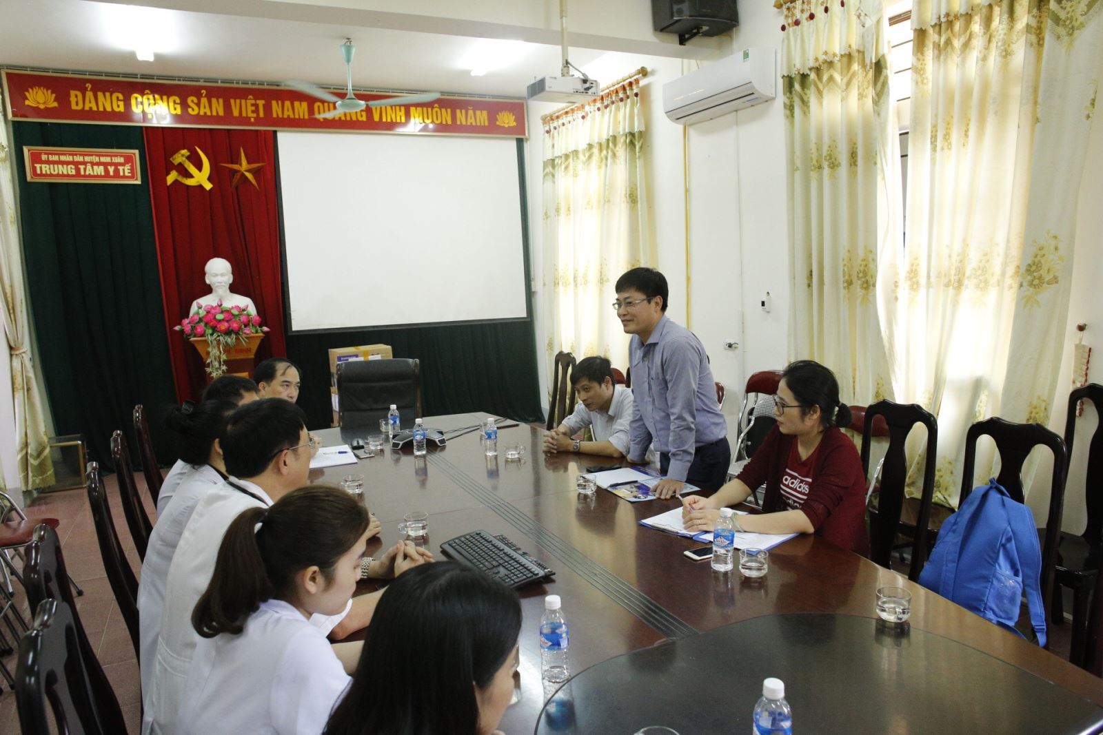 Đồng thời sẽ hỗ trợ, hợp tác đào tạo cho các bác sỹ, kỹ thuật viên chuyên ngành Da liễu trong năm 2021.Thay mặt Trung tâm Y tế, Bác sỹ Lê Viết Hùng đã tiếp nhận và trân trọng cảm ơn Ban giám đốc Bệnh viện Da liễu Trung ương; sớm triển khai hoạt động khám, cấp thuốc cho nhân dân một cách hiệu quả và sẽ cử bác sỹ, kỹ thuật viên tham gia khóa đào tạo khi Bệnh viện Da liễu Trung ương mở lớp.