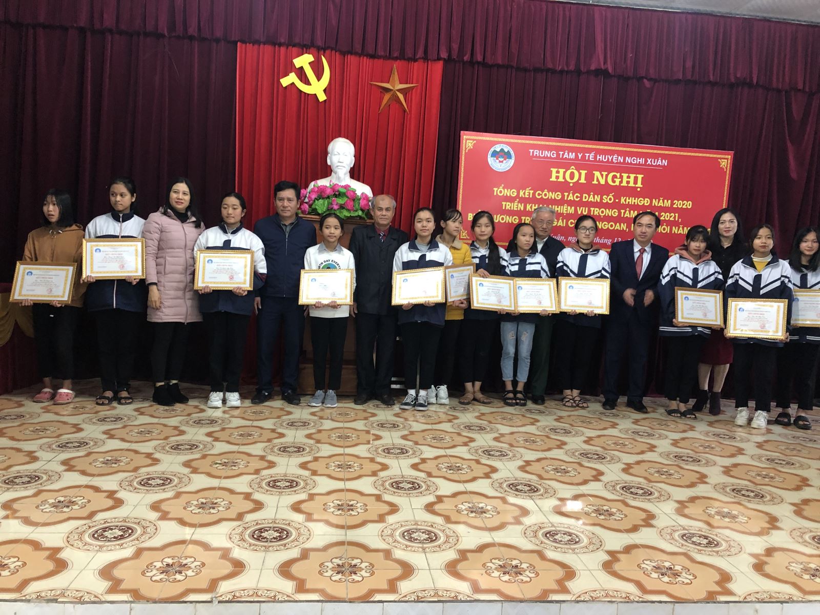 Tham Hội nghị các đồng chí Lãnh đạo, chuyên viên Chi cục Dân số - KHHGĐ tỉnh, các đồng chí Lãnh đạo Đảng, chính quyền và Thành viên BCĐ thực hiện công tác Dân số & Phát triển huyện; Trưởng BCĐ, Trưởng trạm và Viên chức phụ trách công tác dân số trạm y tế các xã, thị trấn; đặc biệt là sự có mặt của 32 trẻ em gái chăm ngoan, học giỏi trong gia đình chỉ có 2 con gái trong toàn huyện.