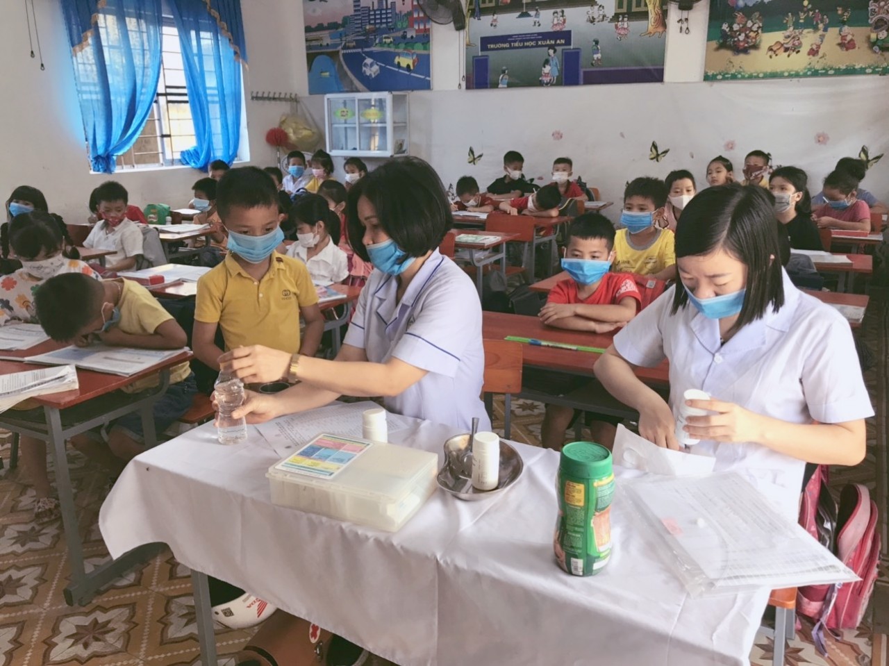 Thực hiện kế hoạch số 201/KH-KSBT ngày 24/3/2021 của Trung tâm Kiểm soát bệnh tật tỉnh Hà Tĩnh; Kế hoạch số 211/KH-TTYT ngày 15/4/2021 của Trung tâm Y tế huyện về viêc triển khai tẩy giun định kỳ cho học sinh tiểu học. Trung tâm Y tế huyện Nghi Xuân phối hợp với Phòng Giáo dục - Đào tạo, chỉ đạo các trạm y tế, trường tiểu học trên địa bàn cho học sinh uống thuốc theo từng lớp để đảm bảo công tác phòng chống dịch Covid – 19 theo công điện số 1699/CĐ-TTg ngày 02/12/2020 và chỉ thị số 26/CT-BYT ngày 31/12/2020. Đây là một hoạt động được tổ chức định kỳ, 2 lần/ năm nhằm nâng cao nhận thức và thay đổi hành vi của học sinh về phòng chống các bệnh giun truyền qua đất, các bệnh có liên quan và đặc biệt là làm giảm tỷ lệ nhiễm giun cho trẻ em./.