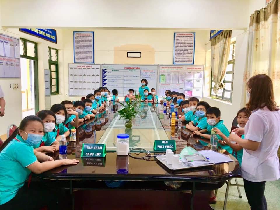 Học sinh uống thuốc tại lớp đảm bảo công tác phòng chống dịch Covid - 19