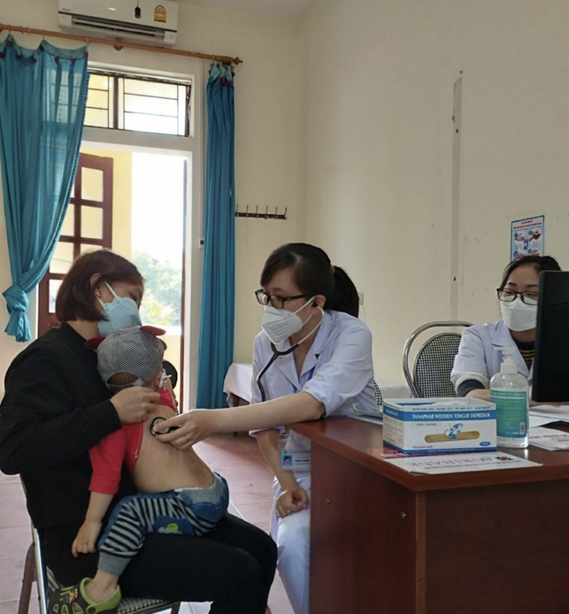 Ths.Bs NT. Phạm Thị Bình khám bệnh cho bệnh nhi tại Trung tâm Y tế huyện Nghi Xuân