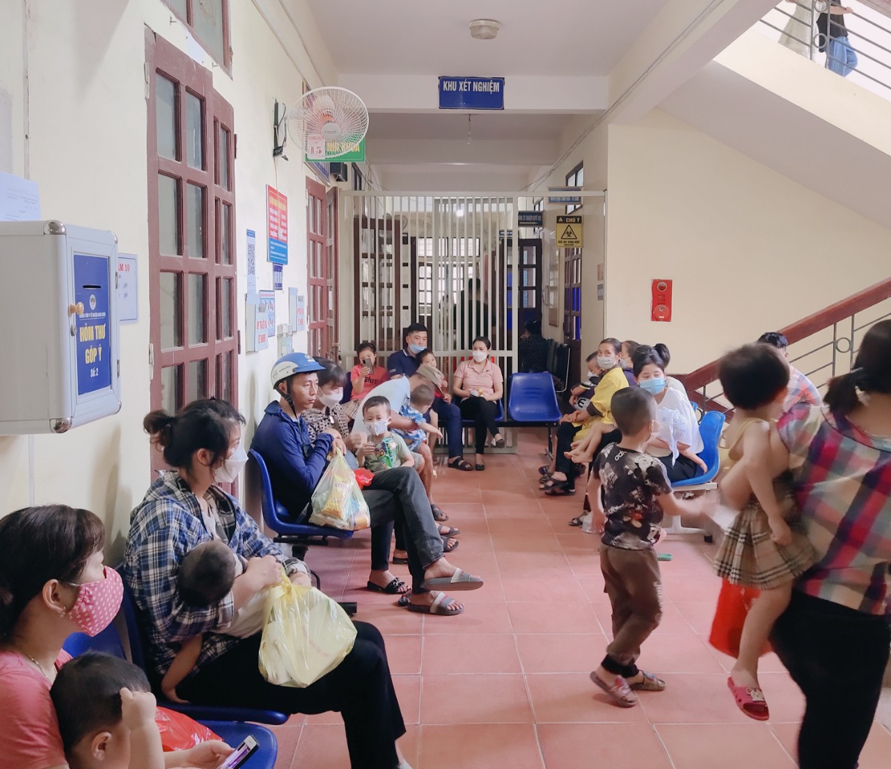 Hình ảnh người nhà đưa bệnh nhi đến khám tại Trung tâm