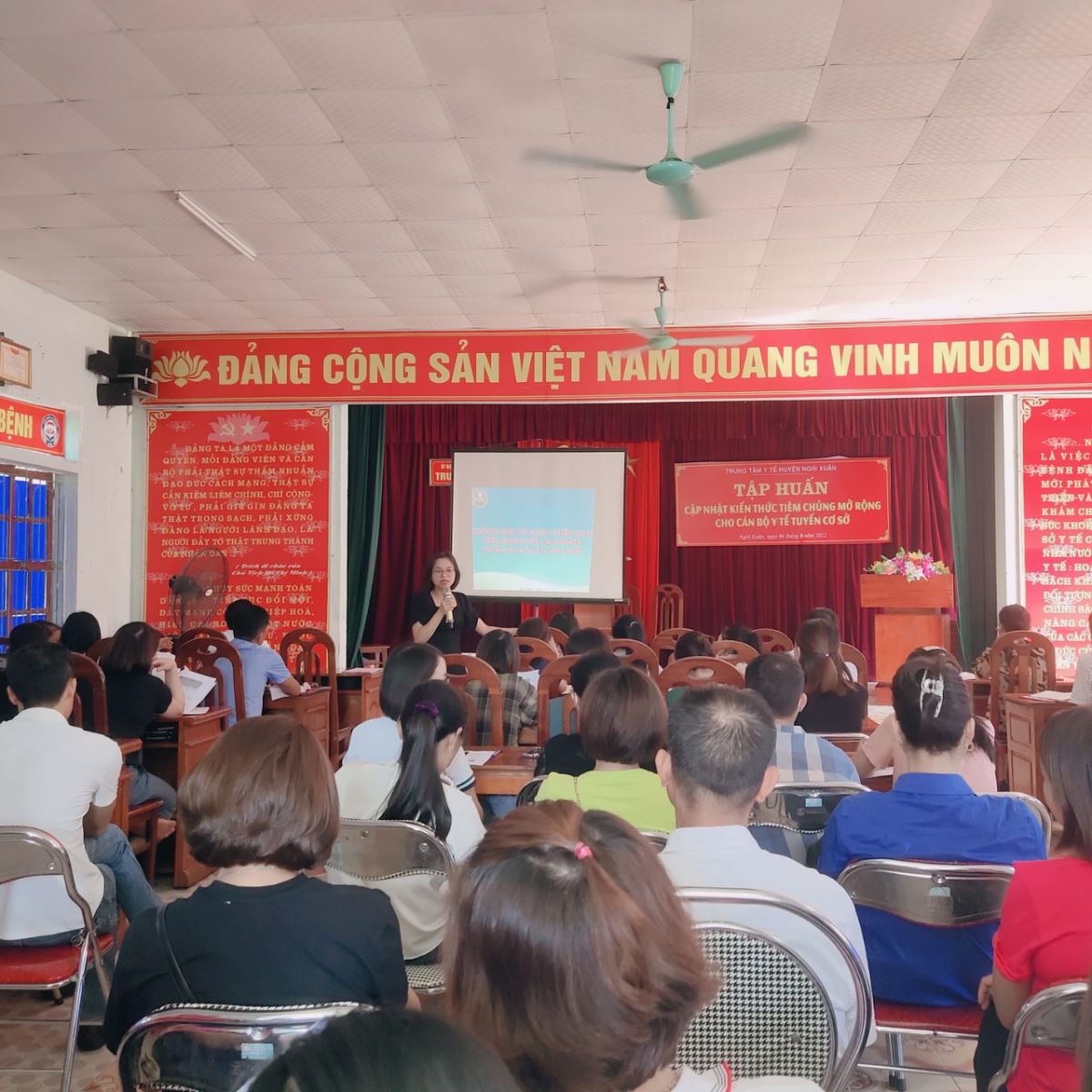 Tham dự và giảng bài có các đồng chí Đào Thị Nga, Mai Thị Duyên Trung tâm Kiểm soát bệnh tật tỉnh; về phía Trung tâm Y tế có BS. Phạm Thị Hồng Lam, Phó Giám đốc; các y bác sỹ, cán bộ phụ trách tiêm chủng trạm y tế các xã, thị trấn.