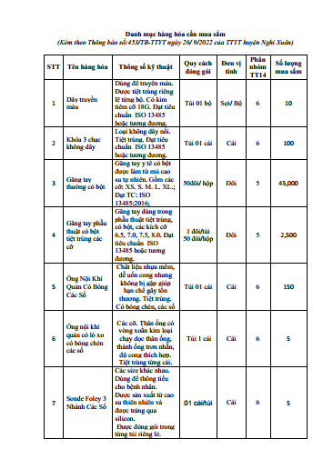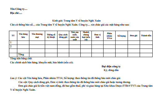 Trung tâm Y tế huyện Nghi Xuân mời chào giá vật tư y tế