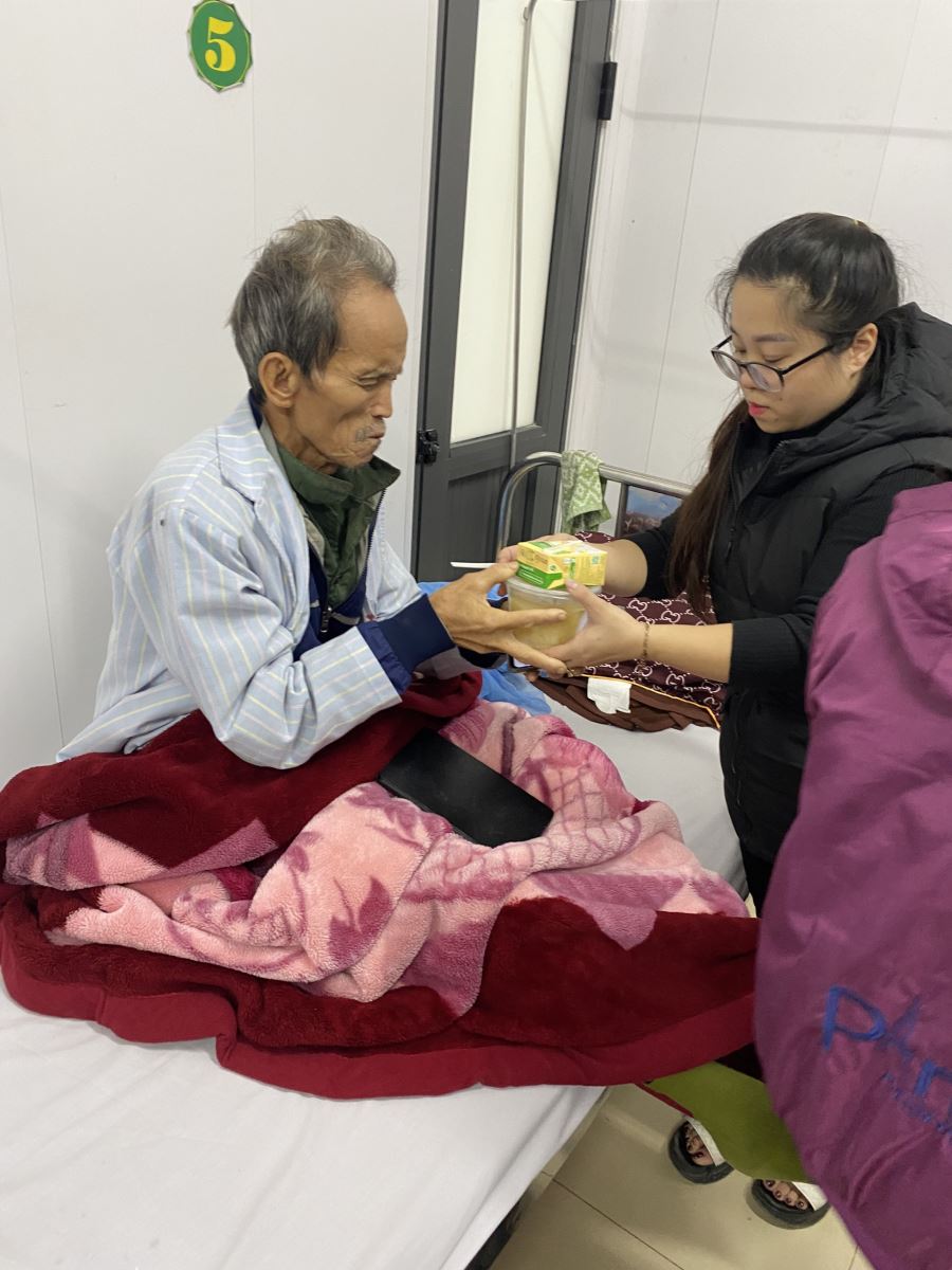 Những bát cháo giá trị vật chất tuy nhỏ nhưng giá trị tinh thần vô cùng lớn. Các suất cháo đã được trao tận tay các ba mẹ, ông bà đang điều trị, chăm sóc người nhà tại viện. Bệnh nhân Hồng đang điều trị tại Khoa Nội chia sẻ: “Hôm nay nhận cháo ăn, tôi vui quá. Cháo thơm ngon lắm, có thêm sữa nữa mà lại không mất tiền. Cám ơn các anh chị nhiều lắm, mong sẽ có thêm nhiều tấm lòng hảo tâm ủng hộ bệnh nhân, cán bộ y tế bệnh viện.