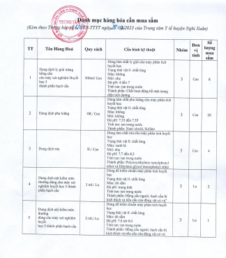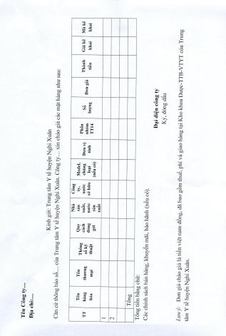 | TRUNG TÂM Y TẾ MỜI CHÀO GIÁ HÓA CHẤT SINH PHẨM