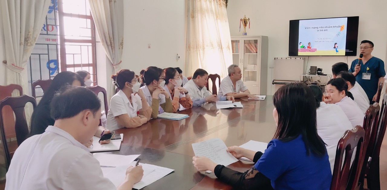 Tại buổi tập huấn, các học viên đã được Ths.Bs Bùi Đức Vũ Khoa Cấp cứu - Chống độc Bệnh viện Nhi Trung ương cập nhật các kiến thức về bệnh viêm màng não nhiễm khuẩn như: Khái niệm, dịch tễ học, nguyên nhân, triệu chứng lâm sàng, cận lâm sàng, các biến chứng, di chứng, phác đồ điều trị bệnh và hướng dẫn quy trình chọc dịch não tủy, chỉ định, chống chỉ định, tai biến thường gặp khi chọc dò dịch não tủy.