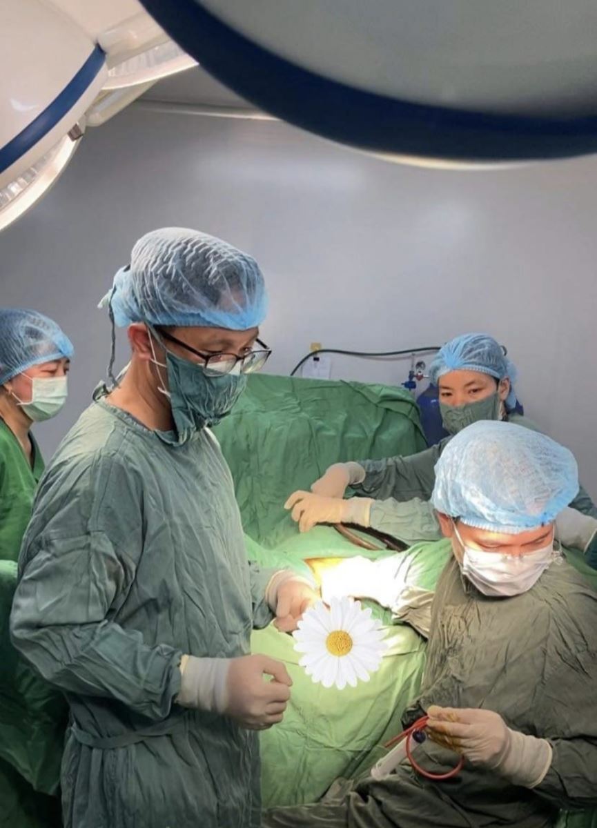 Các bác sỹ Trung tâm Y tế huyện Nghi Xuân và đoàn chuyên gia phẫu thuật cho bệnh nhân