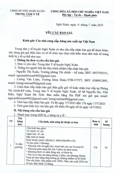 TRUNG TÂM Y TẾ HUYỆN NGHI XUÂN THÔNG BÁO MỜI CHÀO HÀNG