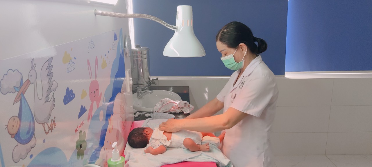 Với không gian sạch sẽ thoáng mát, công trình vệ sinh khép kín, có điều hòa và đặc biệt là đội ngũ y bác sỹ đầy y đức, trách nhiệm. Các bé sinh ra được chăm sóc đặc biệt: Được tắm mát, chăm sóc rốn hằng ngày, tiêm phòng sớm các vắc xin phòng bệnh viêm gan B, Lao sơ sinh; bé được chiếu đèn nếu có vàng da, lấy mẫu máu gót chân sàng lọc các bệnh rối loạn nội tiết, chuyển hoá.