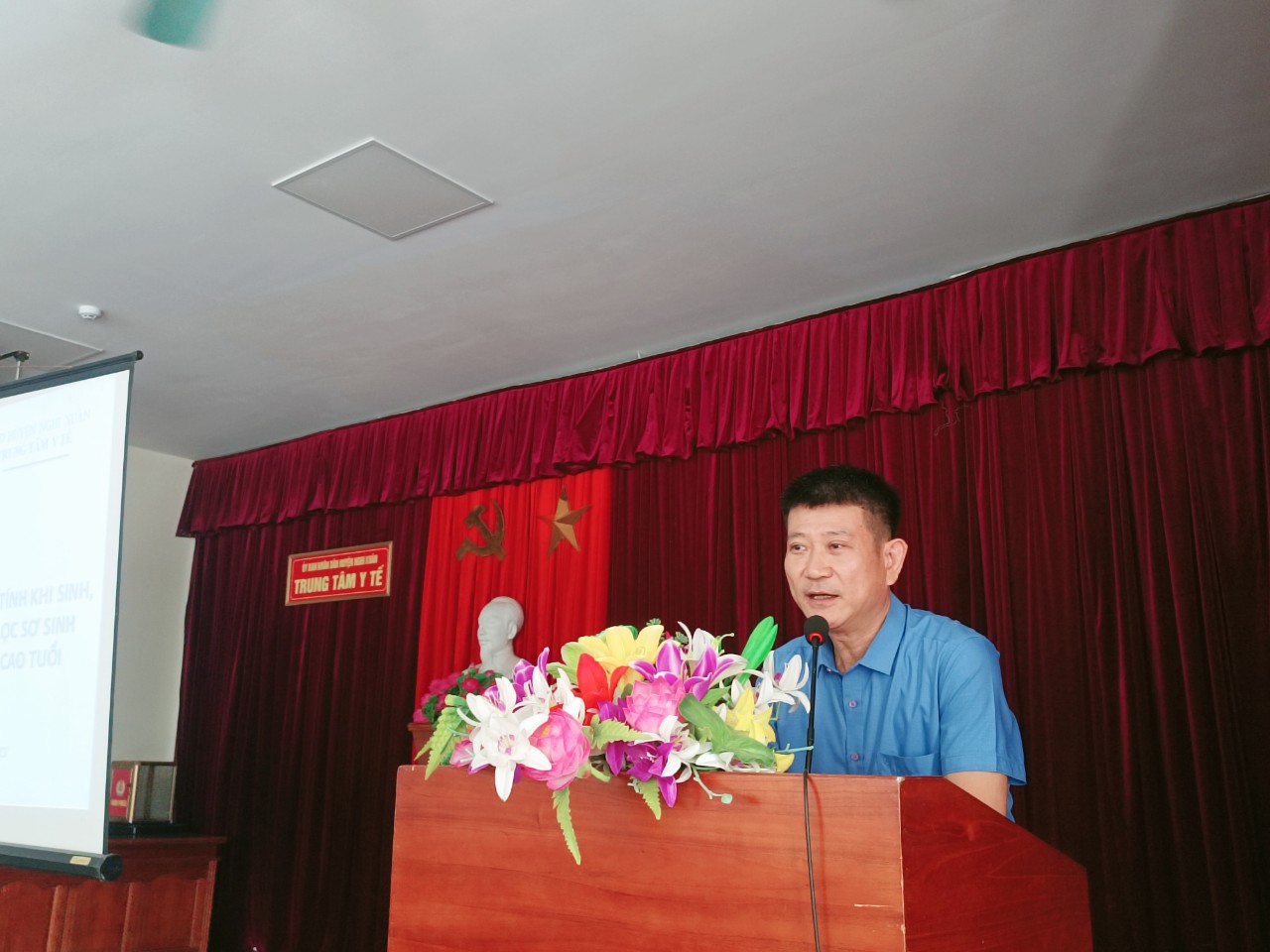 Bác sĩ Phan Trường Sang, Chi cục trưởng cùng trưởng Chi cục Dân số - KHHGĐ tỉnh phát biểu khai mạc lớp tập huấn