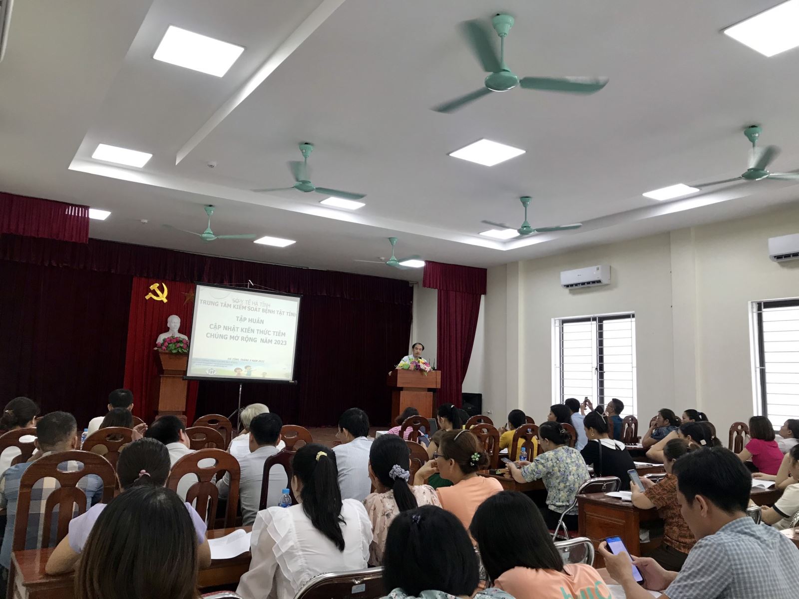 Tham dự lớp tập huấn có các bác sỹ khoa Phòng chống bệnh lây nhiễm, Trung tâm Kiểm soát Bệnh tật tỉnh Hà Tĩnh; Bs. CKI. Lê Viết Hùng Giám đốc và cán bộ Trung tâm Y tế huyện làm công tác giám sát, chỉ đạo, thực hiện công tác tiêm chủng; cán bộ trạm y tế 17 xã, thị trấn; các trung tâm tiêm chủng dịch vụ trên địa bàn.