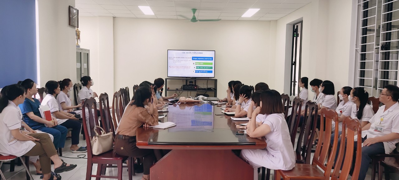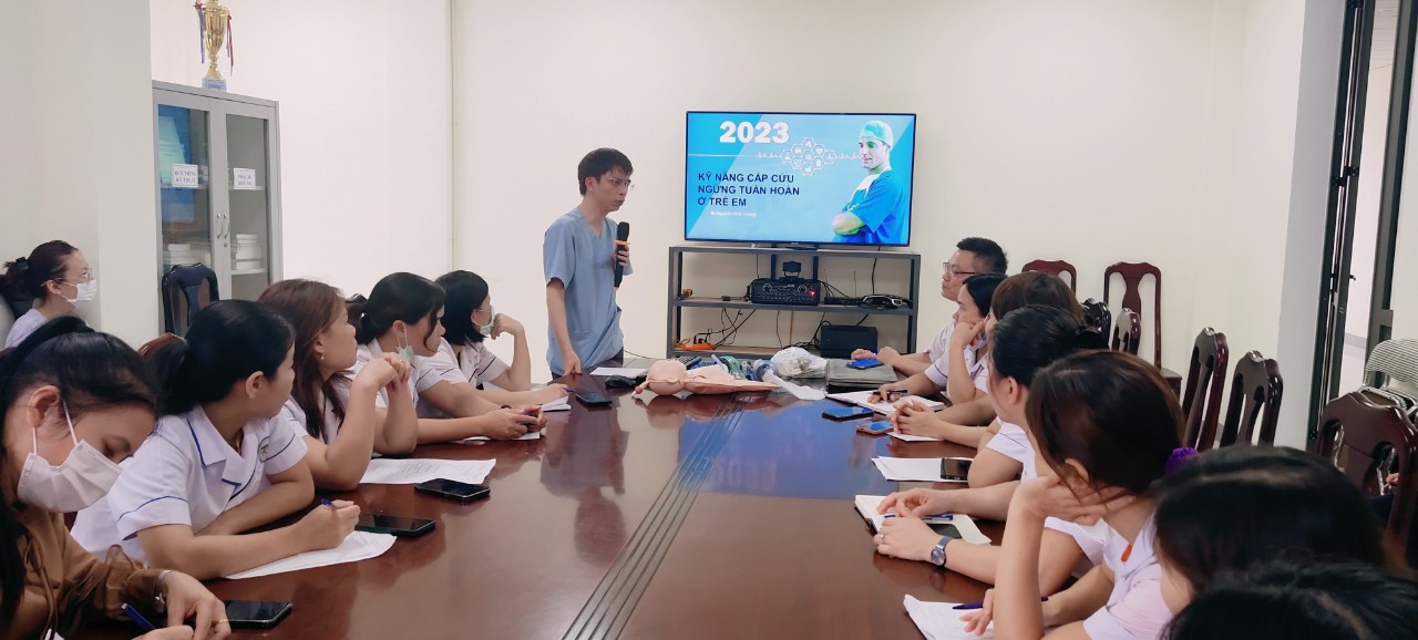 Tại buổi tập huấn, các y bác sỹ đã được Ths.Bs Nguyễn Đình Hoàng Bệnh viện Nhi Trung ương trao đổi các nội dung: Tổng quan, phân loại, lâm sàng, cận lâm sàng, xử trí, tiên lượng sốt co giật; Tổng quan ngừng tim ở trẻ em, các bước tiến hành cấp cứu ngừng tuần hoàn ở trẻ em và thực hành các bước trên mô hình.