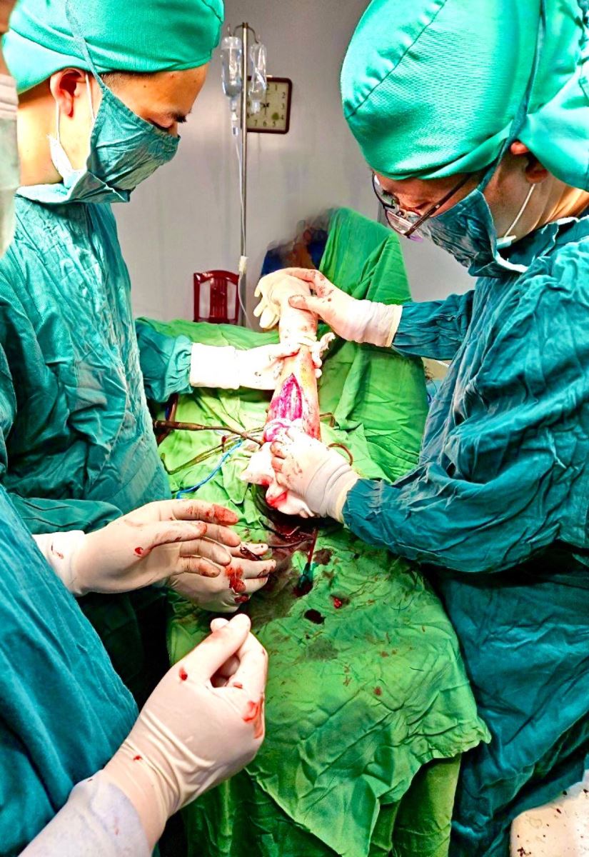 Qua thăm khám lâm sàng kết hợp với các phương pháp chẩn đoán hình ảnh, bệnh nhân được chẩn đoán: Gãy phức tạp 1/3 giữa 2 xương cẳng tay trái di lệch/ Gãy xương sườn. Các bác sĩ khoa Ngoại Tổng hợp đã nhanh chóng cấp cứu tích cực cho bệnh nhân cũng như hồi sức dự phòng chống sốc chấn thương, tiêm truyền thuốc giảm đau, hội chẩn và hoàn thiện xét nghiệm để tiến hành phẫu thuật kết hợp xương bệnh nhân một cách nhanh nhất. Sau 1 tiếng, ê kíp gây mê cùng các bác sĩ, phẫu thuật viên đã phẫu thuật thành công cho bệnh nhân. Hiện sức khỏe của bệnh nhân đã ổn định và được xuất viện.