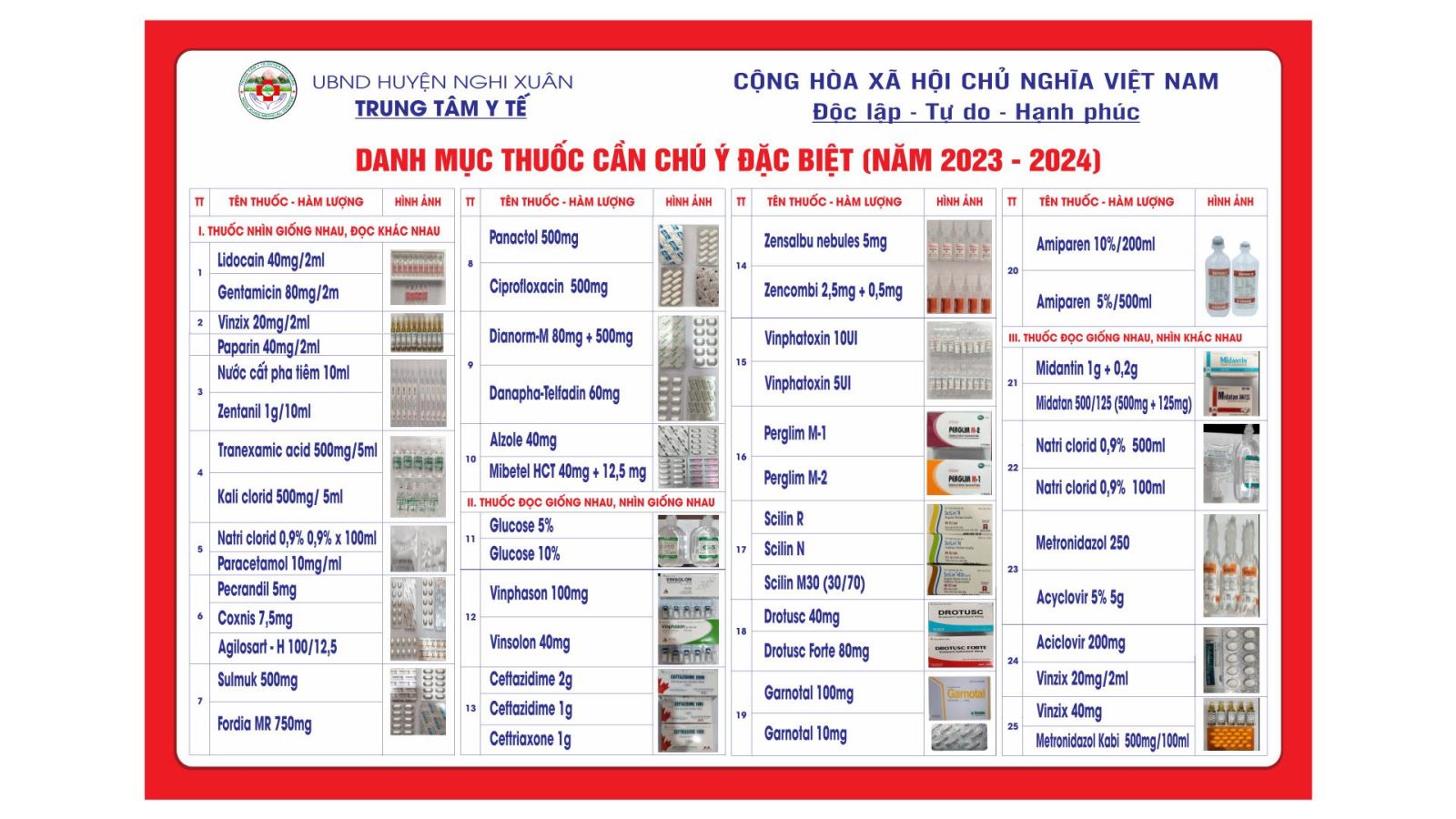 Danh mục liên quan đến thuốc phải kiểm soát đặc biệt tại bệnh viện bao gồm: