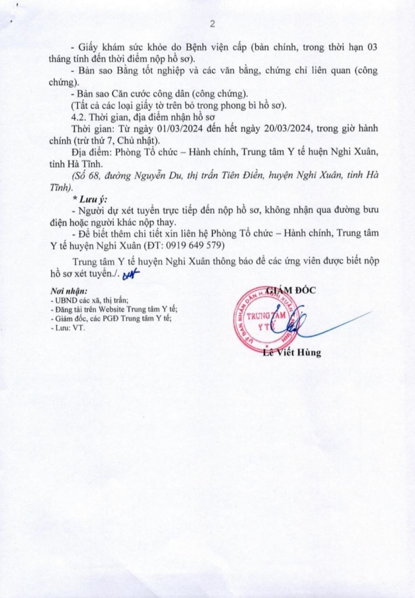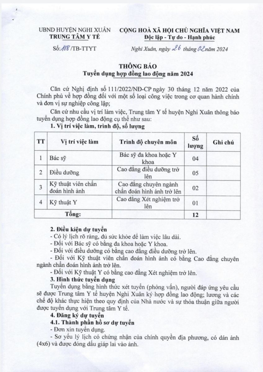 TRUNG TÂM Y TẾ HUYỆN NGHI XUÂN TUYỂN DỤNG HỢP ĐỒNG LAO ĐỘNG