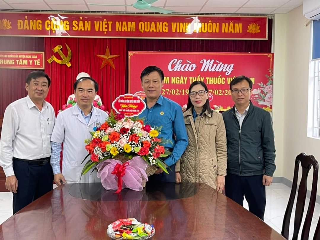 Trung tâm Y tế huyện Nghi Xuân xin chân thành cảm ơn sự quan tâm đặc biệt của Huyện ủy, Hội đồng nhân dân, Uỷ ban nhân dân huyện; Ban chỉ huy Quân sự huyện; Công an huyện; Liên đoàn Lao động huyện; Tòa án Nhân dân huyện; Hải đội 102 cảnh sát biển; Bảo hiểm xã hội huyện; Ngân hàng Nông nghiệp; Phòng Giáo dục và đào tạo; Đảng ủy, HĐND, UBND, UBMTTQ TT Tiên Điền và xã Xuân Hội; các trường: THPT Nguyễn Công Trứ, Nguyễn Du, Nghi Xuân, THCS Nguyễn Trãi, Tiên Yên, Mầm non và TH thị trấn Tiên Điền, MN và Tiểu học Xuân Giang; BIDV Hà Tĩnh; Khách sạn Mường Thanh Xuân Thành; Khách sạn Sông Lam đã đến chúc mừng đội ngũ cán bộ, Y, Bác sỹ Trung tâm Y tế huyện Nghi Xuân nhân kỷ niệm 69 năm Ngày Thầy thuốc Việt Nam (27/02/1955- 27/02/2024).