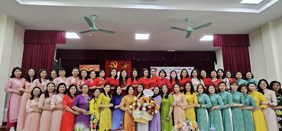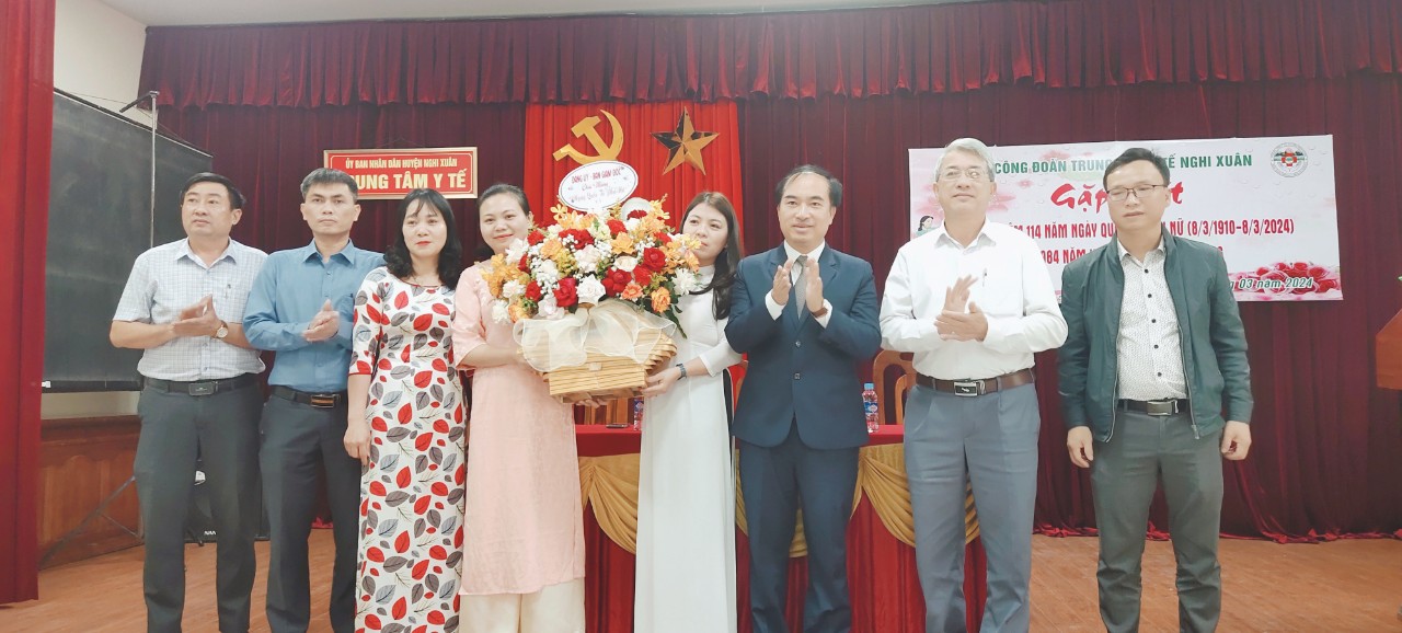 BCH Đảng ủy, Ban Giám đốc, công đoàn Trung tâm Y tế tặng hoa chúc mừng toàn thể chị em
