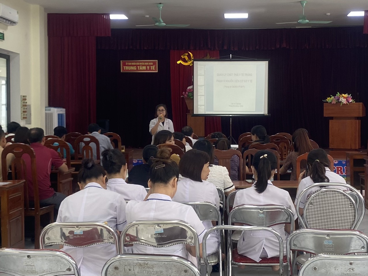 Tại lớp tập huấn, Trần Thị Tuyết Mai - Trưởng phòng Điều dưỡng Trung tâm Y tế huyện Nghi Xuân trực tiếp cung cấp những kiến thức giúp học viên hiểu rõ hơn về các nội dung liên quan đến công tác kiểm soát lây nhiễm, quản lý chất thải trong các cơ sở khám chữa bệnh; các phương pháp khử khuẩn, tiệt khuẩn; an toàn phẫu thuật, phòng ngừa, kiểm soát nhiễm khuẩn vết mổ; giám sát sử dụng kháng sinh.
