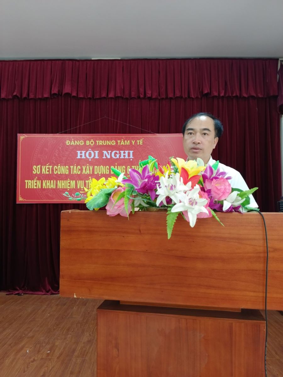 Phát biểu chỉ đạo tại hội nghị, đồng chí Lê Viết Hùng - Bí thư Đảng Bộ, Giám Đốc Trung tâm Y tế đã biểu dương sự cố gắng của toàn tập thể lãnh đạo, cán bộ viên chức đơn vị đã cố gắng chung sức đồng lòng thực hiện nhiệm vụ được giao. Đồng thời đồng chí nhấn mạnh những nhiệm vụ trọng tâm, cần tập trung thực hiện trong 6 tháng cuối năm, đoàn kết nhất trí, chung sức đồng lòng, phấn đấu hoàn thành xuất sắc nhiệm vụ. Xây dựng Trung tâm Y tế ngày càng phát triển, là địa chỉ đáng tin cậy, đóng góp vào sự nghiệp bảo vệ, chăm sóc và nâng cao sức khỏe nhân dân./.