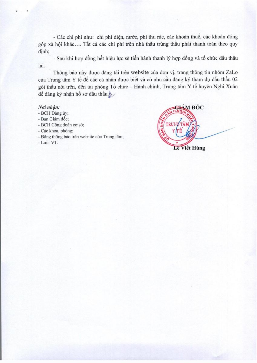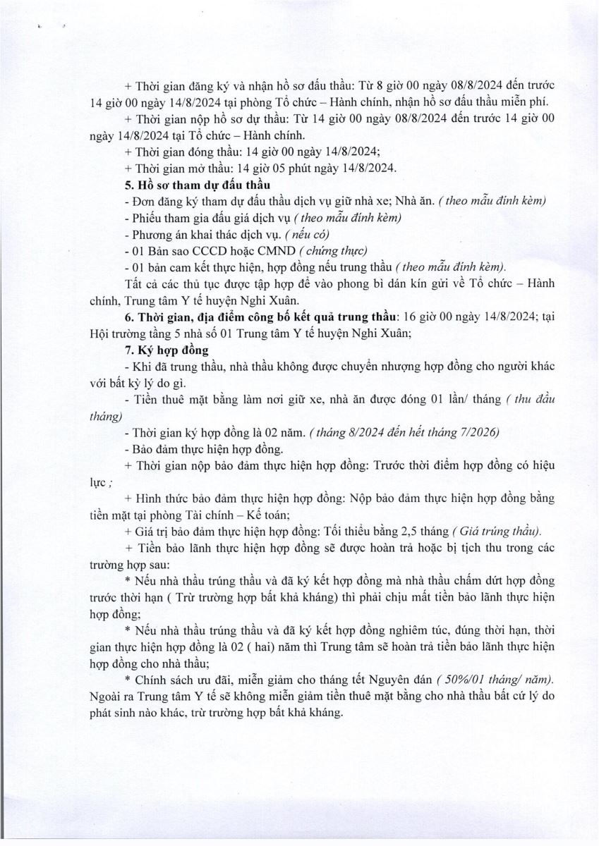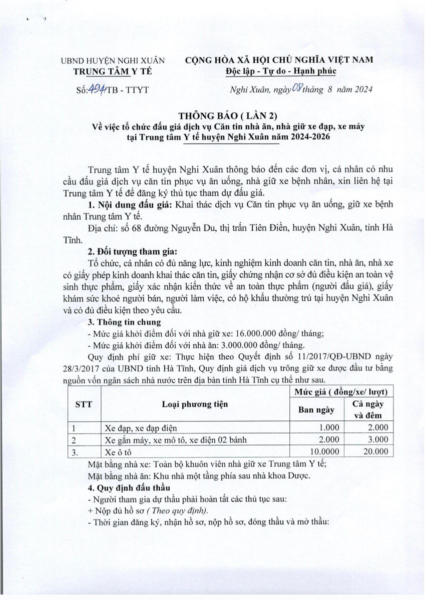 | Trung tâm y tế huyện Nghi Xuân thông báo về việc tổ chức đấu giá căng tin và nhà giữ xe