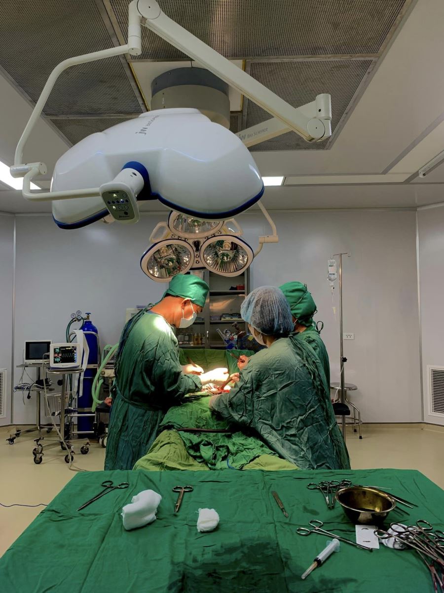 Ca sinh mổ của chị H được đánh giá là phức tạp do lần đầu sinh đôi, vết mổ có sẹo dính. Nhờ sự phối hợp nhịp nhàng của ekip y bác sĩ chuyên nghiệp và trang thiết bị hiện đại, mẹ và bé đều bình an