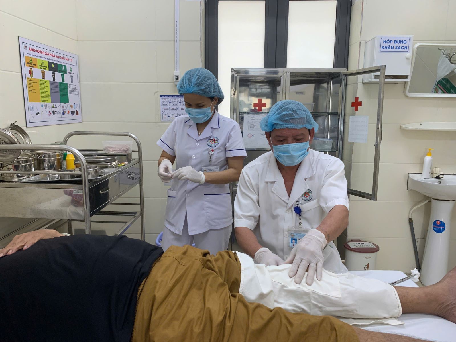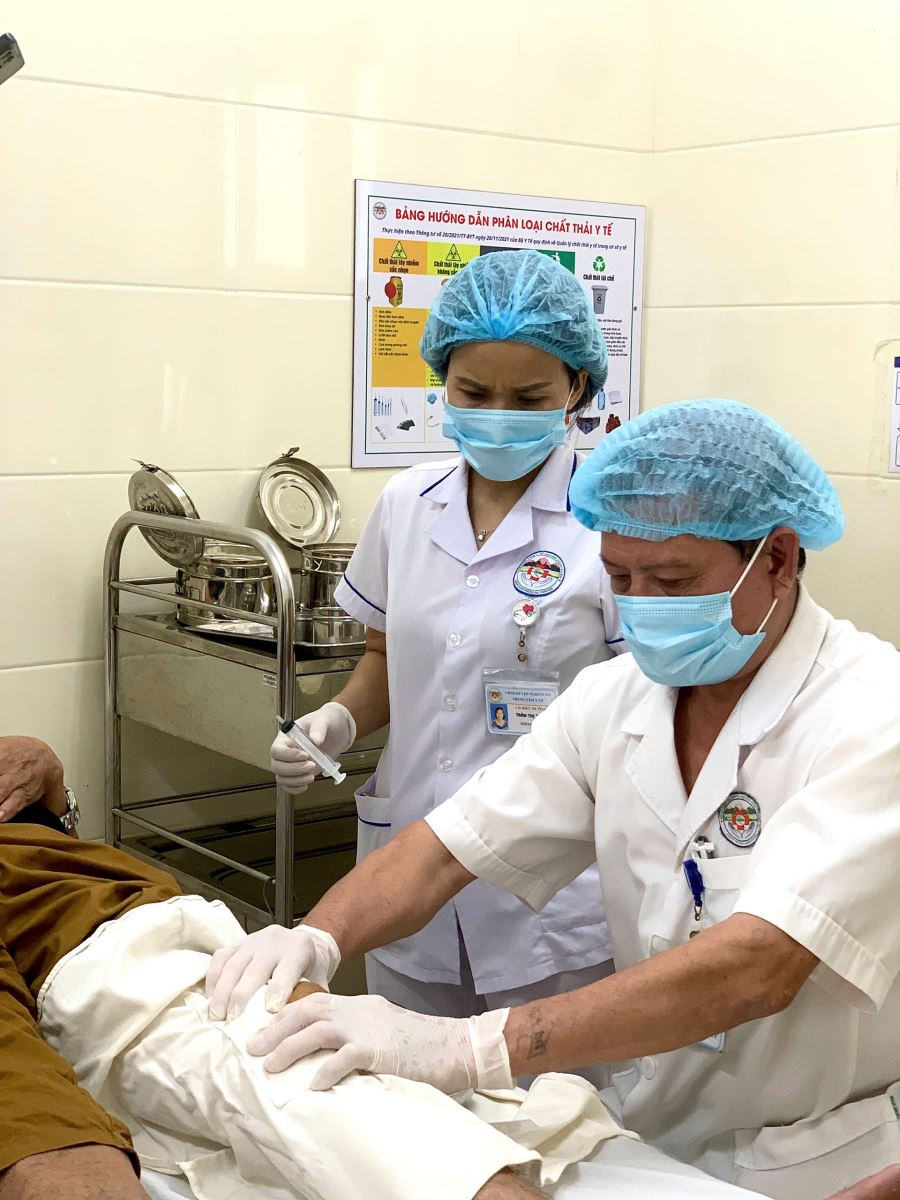 BN Đ.V.K (63 tuổi, Can Lộc) nhập viện trong tình trạng đau nhức, sưng nóng đỏ khớp gối trái, co duỗi hạn chế và không thể đi lại được phải sử dụng xe đẩy. Sau kiểm tra, bệnh nhân được chẩn đoán viêm màng hoạt dịch khớp gối