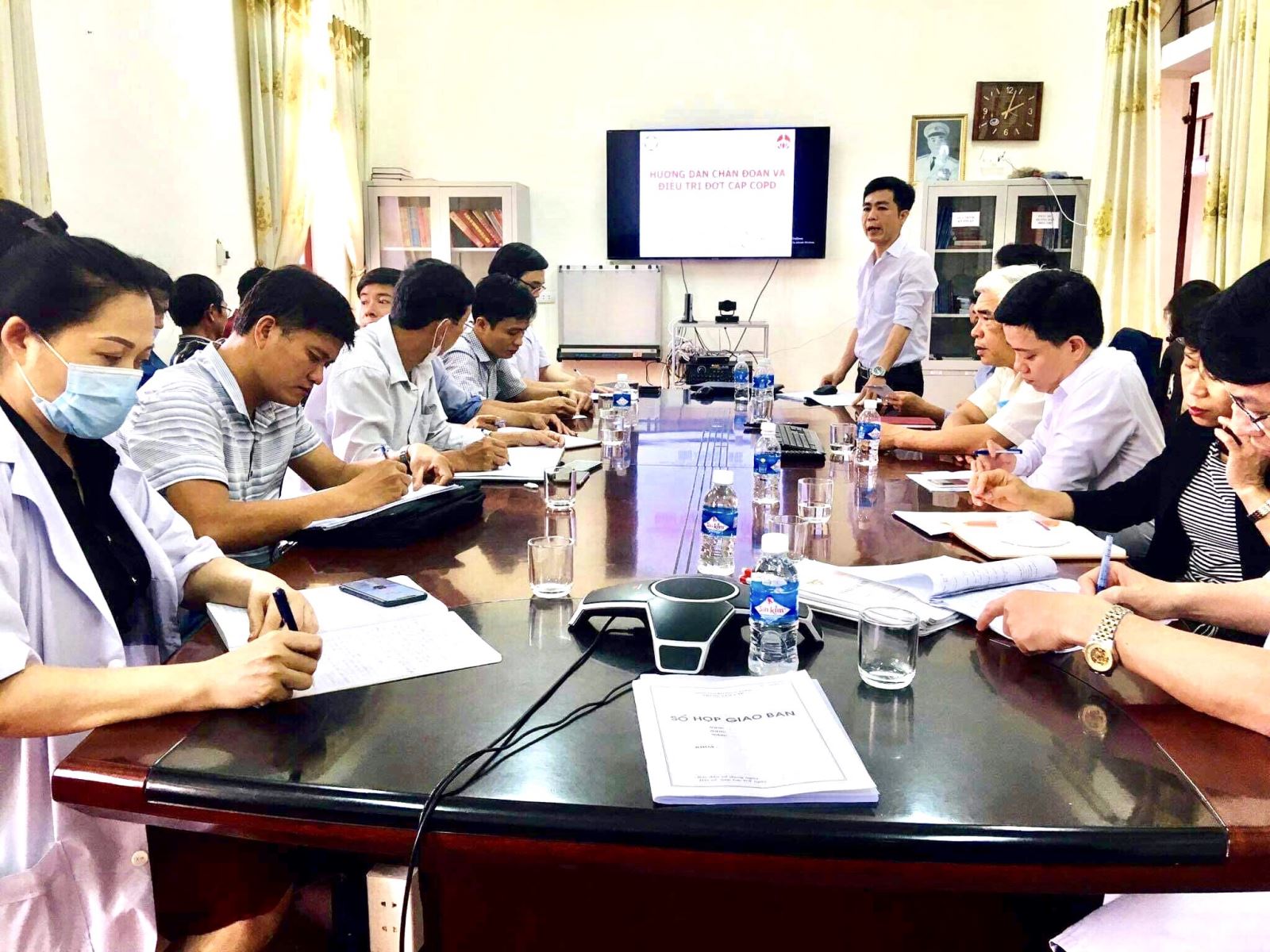 Tham gia buổi tập huấn có các Bác sỹ Khoa lâm sàng tại Trung tâm Y tế và Trưởng trạm, Bác sỹ, Y sỹ đang công tác tại Trạm Y tế các xã, thị trấn. Bác sỹ Chuyên khoa I Trần Đức Linh - Trưởng khoa Truyền nhiễm đã trực tiếp trao đổi, cập nhật những kiến thức mới nhất về nguyên nhân, triệu chứng, chẩn đoán và điều trị Hen - COPD.